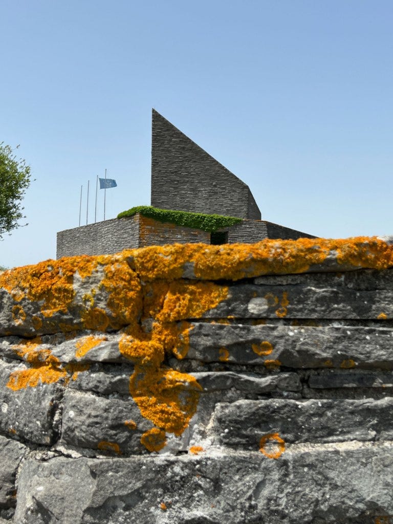 The monument is a massive cemetery for German soldiers killed in WWII. The Futa Pass area was also known as the Gothic Line in WWII and was the site of fierce fighting from 1944 thru 1945 in an attempt to hold the Allied advance. The remains of over 30,000 German soldiers are buried there. The center monument/crypt is a colossal monolith stone at the top of the hill, almost 3,000 ft in elevation, and holds 397 soldiers, 185 of whom are unknown.