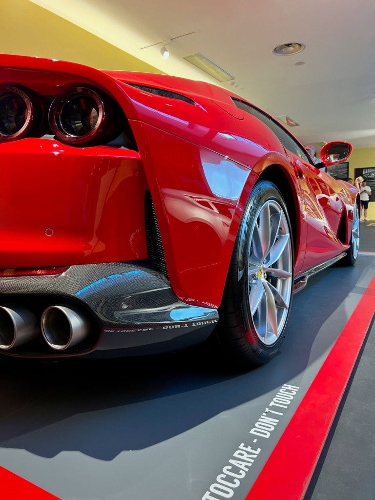 We arrived at the Ferrari Museum and got our tickets to go inside. It was a good display and timeline of the company’s history, but it was a little underwhelming overall. It was just okay compared to the Corvette, Porsche, and Mercedes museums. It’s always lovely to see pristine examples of genuinely unique cars, but the company has such a rich history, and this museum only scratched the surface. The focus was only on the halo models and recent Formula One achievements, with barely a mention of LeMans and other racing. There is another museum in Modena that focuses more on the life of Enzo Ferrari, but we didn’t have time to see that museum.