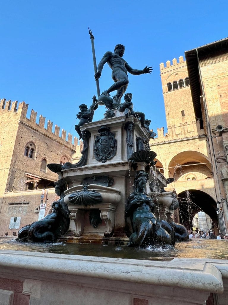 Our hotel in Bologna was easy to find and was a good value for the price and location. We got settled and walked into town, looking to see a few sights and get dinner. We walked to the Piazza Maggiore to see the fountain of Neptune and the Basilica di San Petronio. The fountain is fascinating with the exquisite level of craftsmanship you expect from Italian sculptors, and the square is intriguing. There is a large stage, screen, and hundreds of chairs to watch films in the square. I thought it was for a seasonal film festival or something, but the Google Maps imagery shows the same setup, so it’s either there all the time, or the satellite passed overhead at the same time of year. The basilica was closed, so we just looked around.