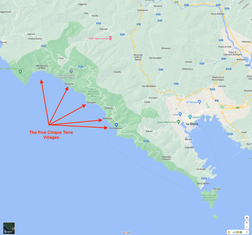 If you’re unfamiliar with the Cinque Terre, it is a collection of five villages that were isolated from the rest of the region for years due to the rugged terrain. They are small fishing villages along the rocky and gorgeous coastline of north-western Italy. Even now that they are a top tourist destination rivaling the well-established locations in Italy, it is still challenging to get to them by car, but trains are great. It only takes 30 minutes to reach the farthest village from the station in La Spezia, and trains run frequently until after 10 PM. The entire area is also part of a national park with legendary hiking trails connecting each village; making the area a top destination for backpackers.