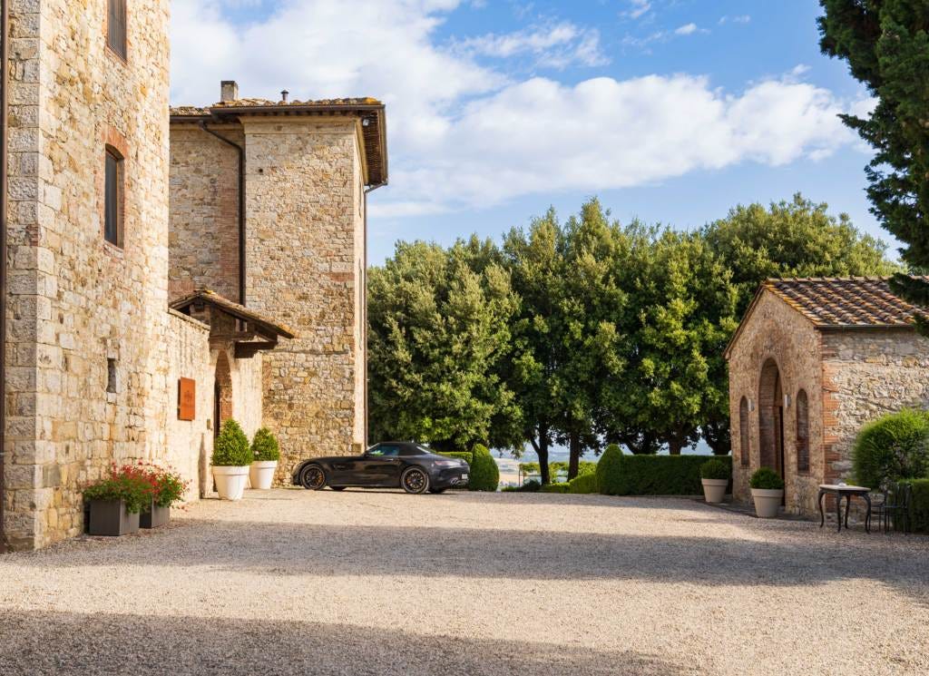 The drive to our vineyard stay at Castello La Leccia wouldn’t take long, so we had to find things to do before we could check-in. I picked a winery from their list of recommendations and scheduled a tasting. After what felt like way too long on dirt roads, we made it to Casa Brancaia. The winery is typical Tuscany, on a hilltop surrounded by vines and cypress trees and impossibly beautiful. We started our tasting in their wine room but also noticed they had a restaurant. Their Chianti Classico Reserva was spectacular, as was their signature “Blue” wine which has garnered seemingly every wine award and high rating in the industry. The wines were all excellent, and Crystal enjoyed a few reds, which was a bonus.