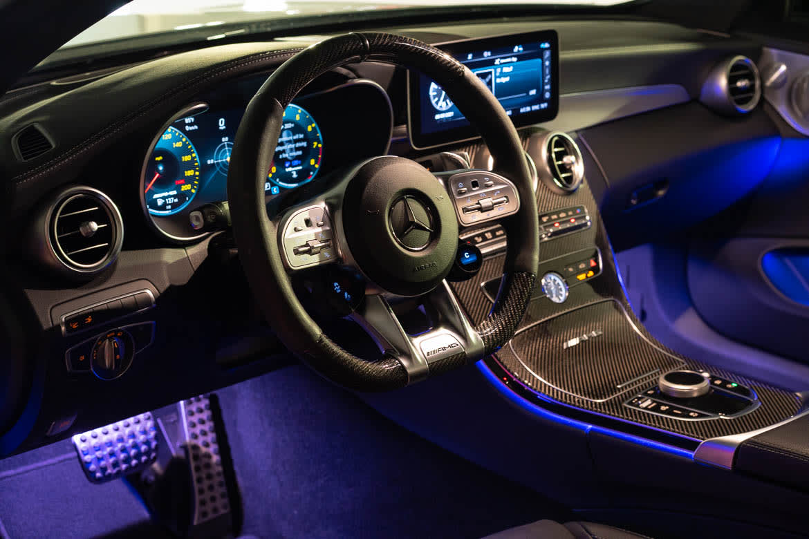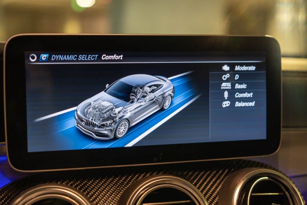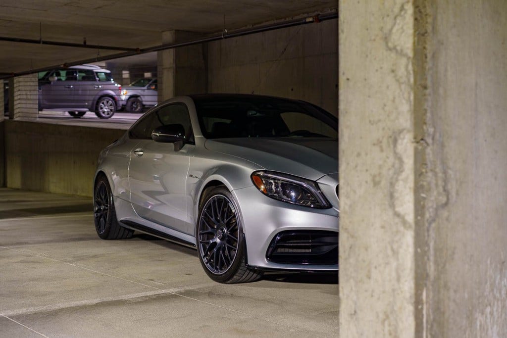 This brings me to my recent experience driving my wife’s new-to-her 2019 Mercedes C63 AMG coupe. To be clear, the car is glorious. It looks the business with a perfect combination of grace and menace. Even in a cliche German color (silver, with essential black accents, of course), it just looks good. Like, really, really good. The grill screams Autobahn left-lane, get out of my way presence, while the silhouette is sleek and graceful, almost timeless.