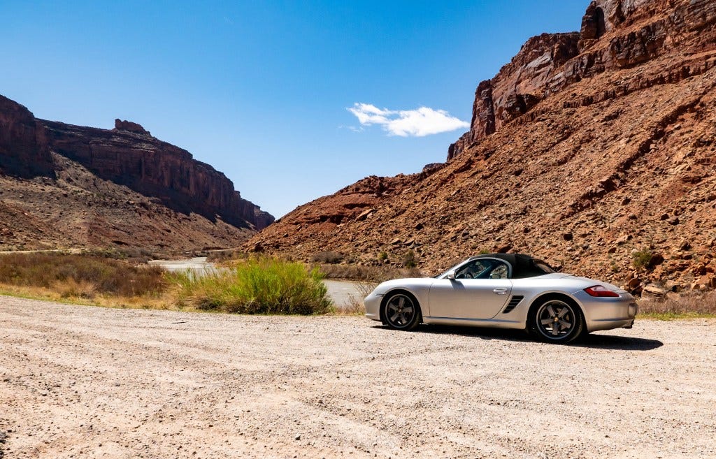 The next day was for relaxing, and we took a leisurely cruise down Highway 128, which follows along the Colorado River and is a recognized scenic byway. It was pretty spectacular and well worth the short drive away from Moab and back. The road follows the river making for excellent twisty sections, but there are many camping areas and off-road trails along the road, so it was busy with traffic on our drive. Even without being able to test the Boxster’s cornering ability, it was a good time.