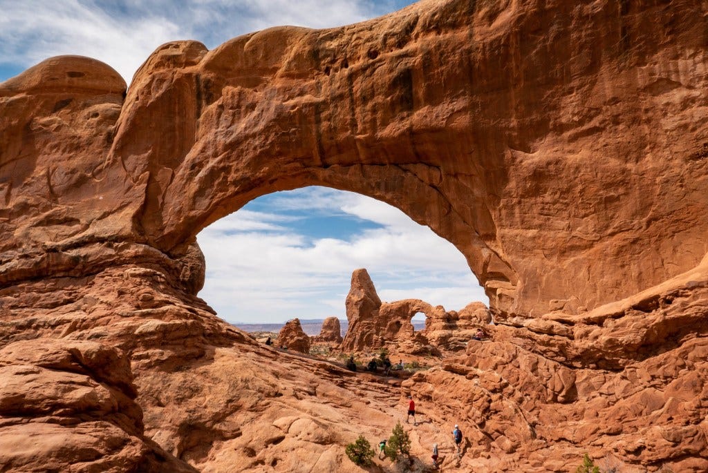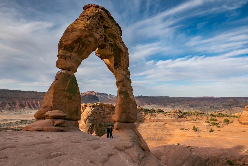 Delicate Arch is by far one of the most popular spots in the park and is worth trying to see either before the crowds arrive in the morning or late in the afternoon. It is a trendy sunset spot for photographers, so don’t expect to have the place to yourself at the end of the day. The hike to the arch itself isn’t that long, but it does get a little steep, so you have to work for it. The reward is worth it when you reach the arch. It is massive, impressive, and amazing all at once. If you squint real hard, you can see my wife and I standing underneath it in the photo below.