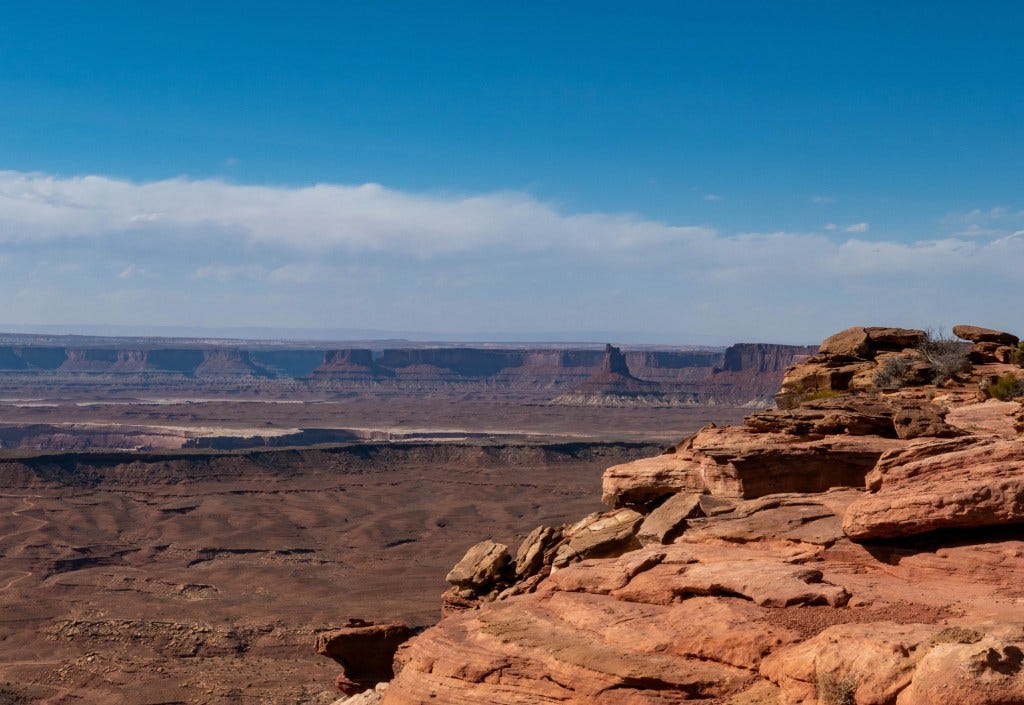 We decided the next day would be for Canyonlands National Park and the Dead Horse Point State Park. Dead Horse Point is well known as an excellent sunset location with views that rival the Grand Canyon (a little-known fact, it’s also where they filmed the end scene for Thelma and Louise). Since sunset at the state park was our main goal, we decided to explore the Island in the Sky section of Canyonlands in the afternoon. This proved to be a slight tactical error as we had to wait in line for almost an hour to enter the park; at least they weren’t turning people away like at Arches.