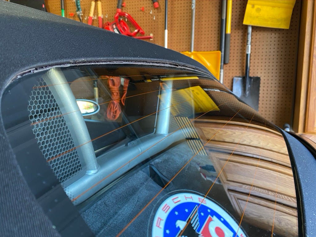 Since I’ve been driving it, I’ve noticed the seal around the rear window in the convertible top is deteriorating. So that’s going to require some attention before summer. I’m not sure exactly what my options are, but I’m sure what seems to be a simple thing to fix will require a new top. As they say, when it comes to convertibles, you need to mentally put a dollar (or five) in the jar every time you operate the top because you’re just getting closer to needing a new one.