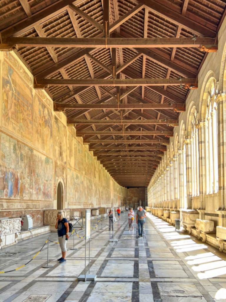 The Camposanto is intriguing, with frescos and Roman tombs decorating the place. It is at once a morbid and fascinating place. The cathedral was impressive and worth the visit. That’s saying something considering how over cathedrals I am at this point. It has a fantastic ceiling with some of the best craftsmanship I’ve seen in any of the places we’ve visited. Plus, the artwork adorning the walls is worthy of being displayed in any museum. It is so much more than the repetitive stations of the cross that so many cathedrals have. The works are religious, but they depict coronations, baptisms, and symbolic events in history and the faith. Then there is the architecture and sculpture, which is also top-notch. I was glad to have the opportunity to spend time there, which was a genuine surprise.