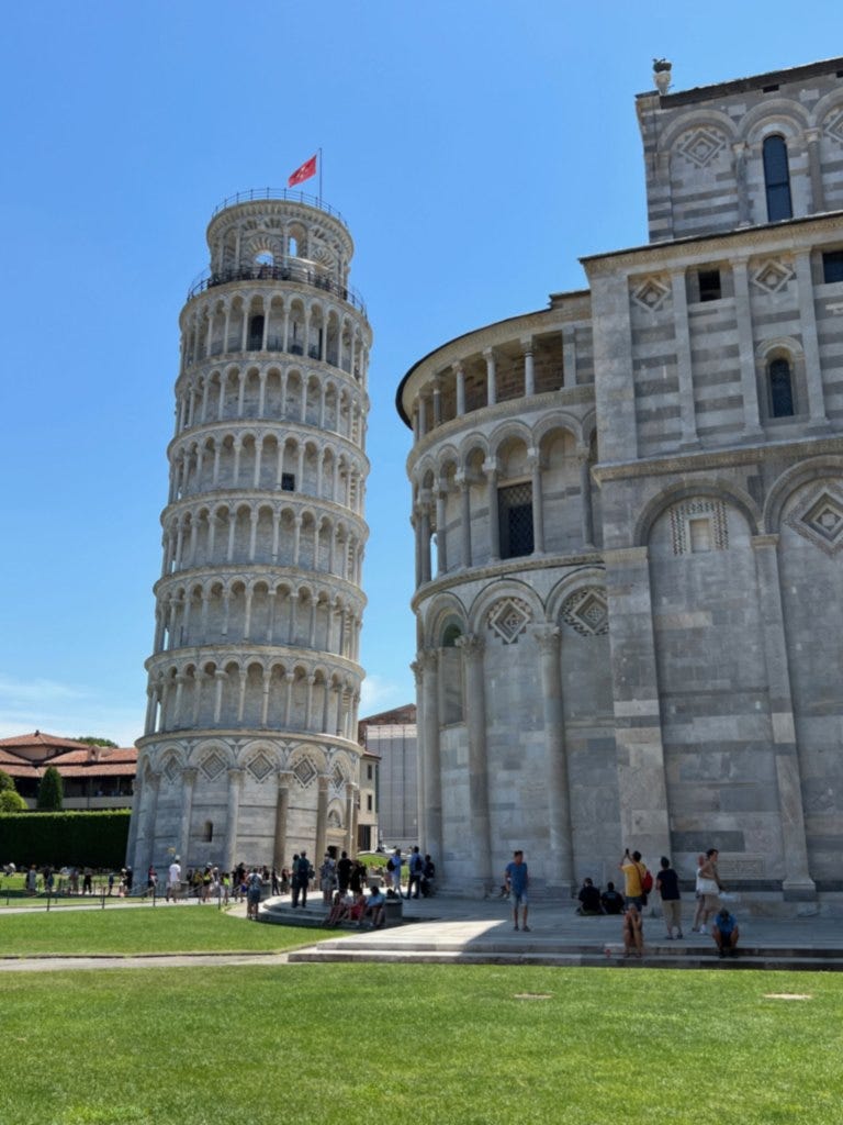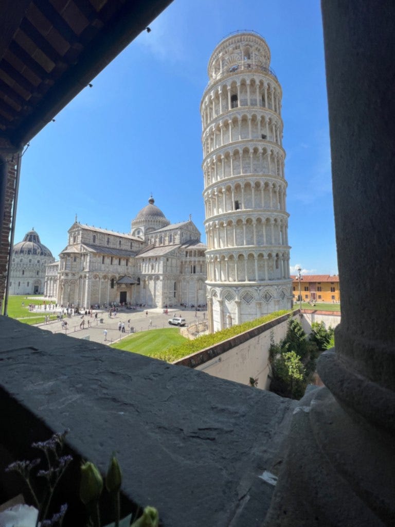 After touring the five villages in the first two days of our stay, we decided to make a day trip to Pisa. The train to Pisa was an easy one-hour journey from La Spezia. By not driving, we didn’t have to worry about finding parking near a major international tourist destination. There are two train stations in Pisa, Pisa S. Rossore and Pisa Centrale, the big one. We stopped at Pisa S. Rossore with a handful of other people. It was an eight-minute walk from that station to the tower grounds, a piece of cake, and about a third of what it would’ve been from the central train station. So if you take the train to see the leaning tower of Pisa, know which station to use.