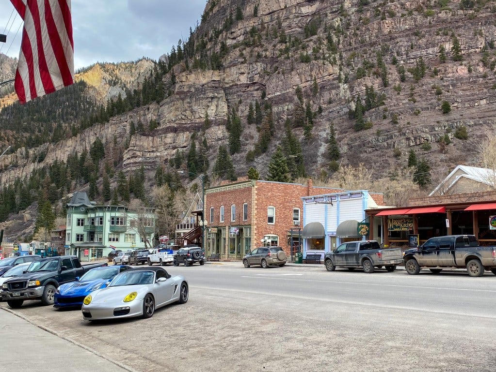 Our reward for the drive was the crazy small and oddly charming town of Ouray, where our cars blended in perfectly parked on Main Street. I knew the town was small before we arrived, but I didn’t realize it is only about two miles long and a street or two in either direction of Main Street wide. To top off the town’s isolation, we arrived during the local spring break, so half the shops and restaurants were closed. We managed to find a good spot for lunch before hopped back in the cars and made our way south. Our second run through the Million Dollar Highway was even better than the first, with fewer slow-moving trucks, and someone had cleared the fallen rocks we saw on our way north, so we had smooth sailing.