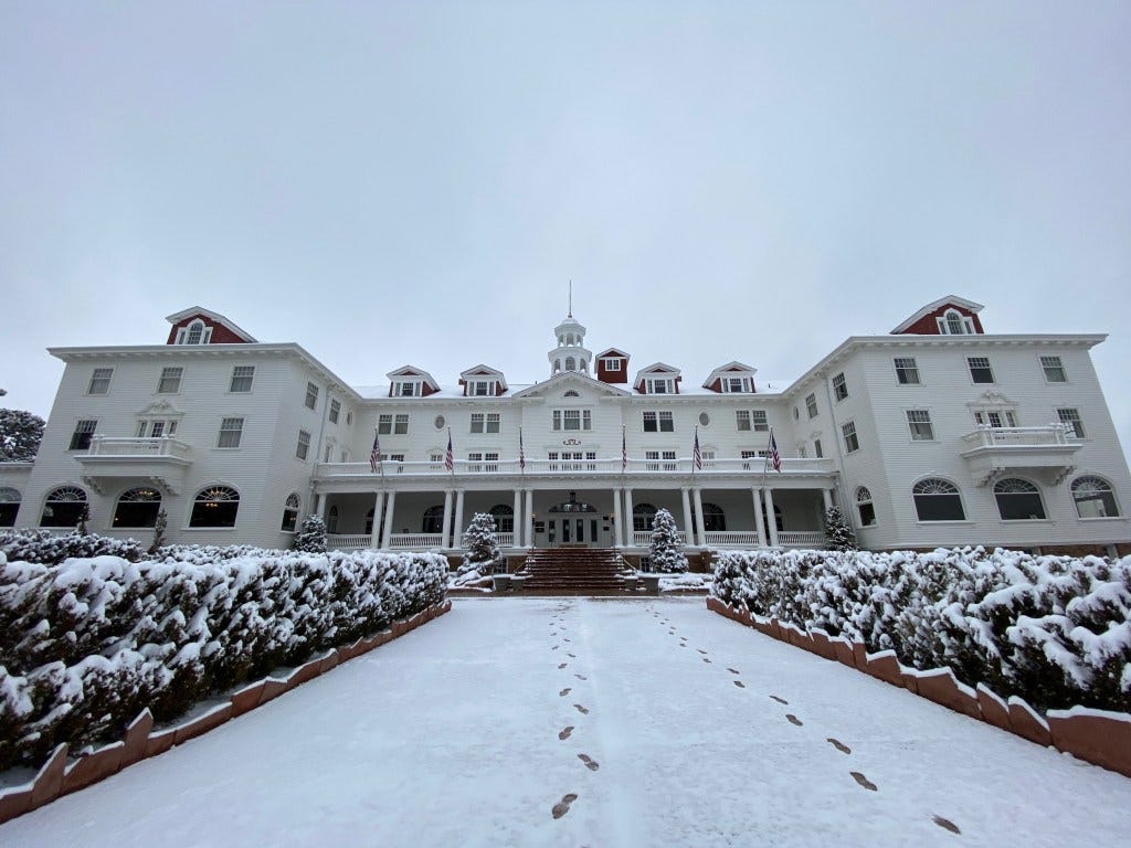 Our intent for staying in Estes Park was to use it as a base camp for hiking adventures in the Rocky Mountain National Park, but with Crystal recovering, that plan was scrapped. It’s probably just as well as Mother Nature decided to deliver eight to ten inches of snow on the second day of our stay. We decided to take our chances by staying at the legendary (infamous to some), The Stanley Hotel. You know the one, it’s where Stephen King stayed, had nightmares, and was inspired to write a little tome called The Shining. On a lighter note, it was also used to film several scenes from Dumb and Dumber, so we had that going for us, which was nice.