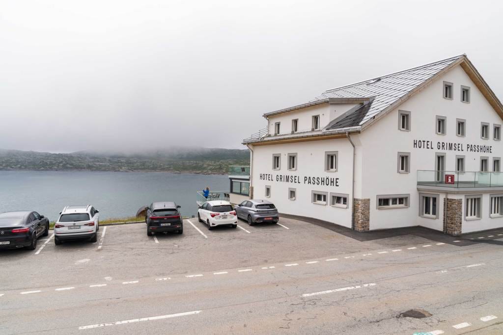 After grabbing an overpriced snack and being overcharged by the very unfriendly man running the café, we headed to the Grimsel Pass. The drive was fun because it wasn’t that long, and there was very little traffic, so I had a chance to wind out the 308 and have a little fun in the corners. As we arrived at the top, we disappeared into the clouds and reached a small lake and the central hotel in Grimsel. We stopped to take photos and check out this bizarre area with glacial lakes, fierce wind, and seemingly never-ending low clouds. We were in the heart of the Swiss Alps with an elevation of 2,164 meters, and you could see two glaciers that feed the Rhone river. It was spectacular and cold, very cold.