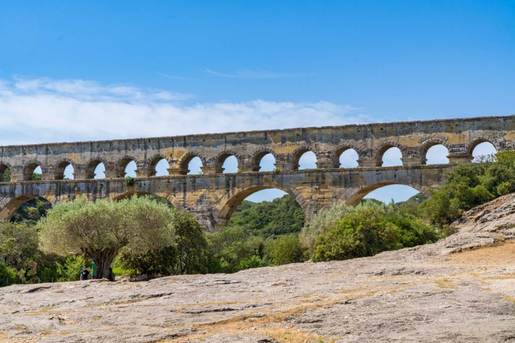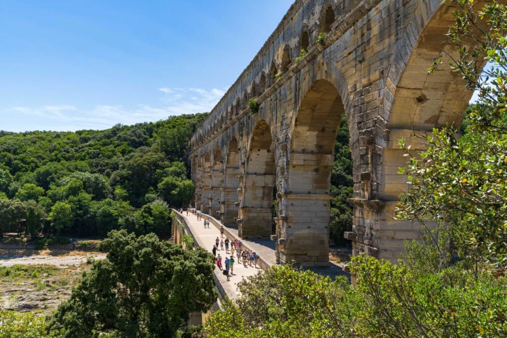 The day began with a relatively short drive to see the Pont du Gard, a nearly 2,000-year-old Roman aqueduct that spans the river and is massive. The tour was simple and fun, and the views were spectacular. The river below the aqueduct was deep, and the water was crystal clear, allowing us to see a school of fish. Each fish had to be over two feet long and between 20-30 lbs. People were wading and kayaking in the water, and as the day was getting hotter, they both seemed like good ideas.