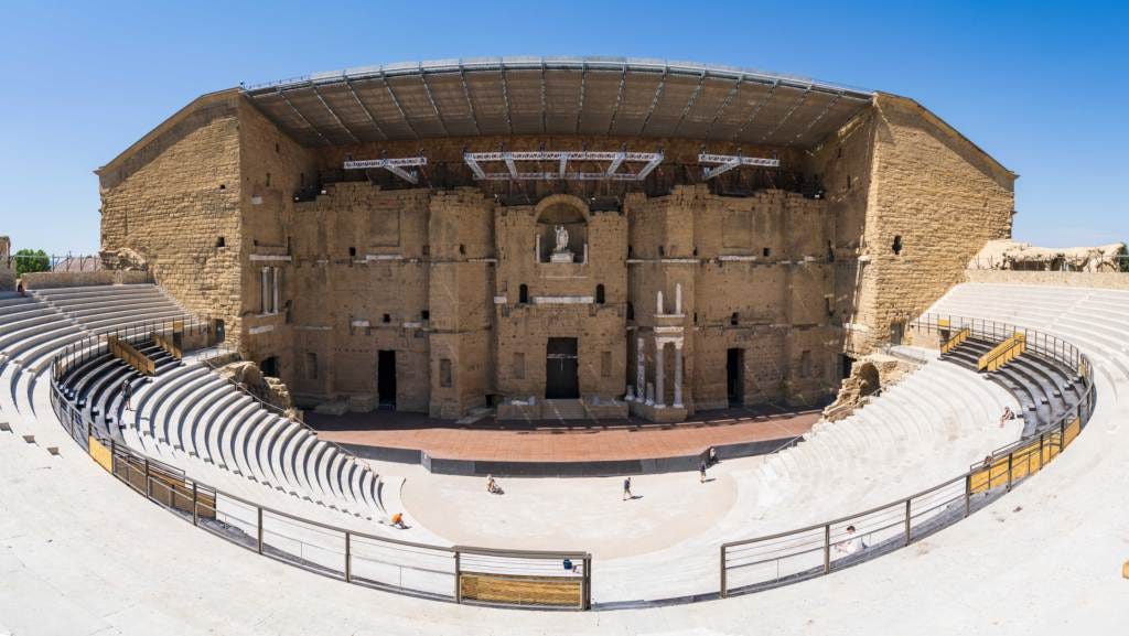 We did not partake as we had other plans for the afternoon. After walking around the site and admiring the impressive structure, we hopped in the car and headed north to Orange to explore more Roman stuff. The city is home to the Roman Theater of Orange which dates to the early first century, shortly after the assassination of Julius Caesar. It represents one of the largest Roman theaters still standing. The main wall is impressive, as are all Roman construction projects and the history is as fascinating as it is varied. As different tribes conquered the region, the building has had many uses, including a neighborhood, prison, and barracks. The tour was excellent, but it was getting wicked hot, and the sun drained me. We stopped for a nice lunch in a small restaurant called Festival Café, where I had a fantastic Caesar salad.